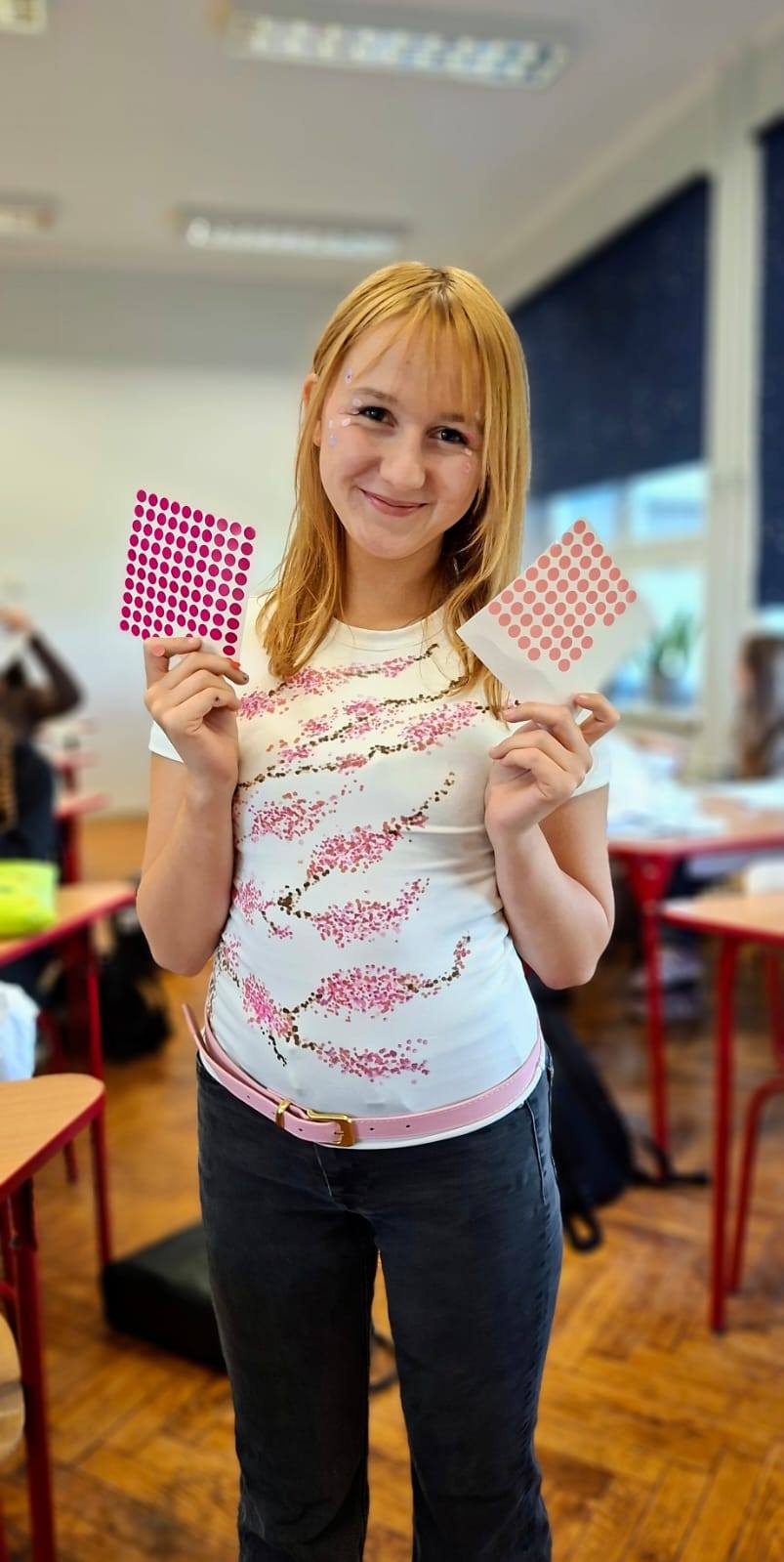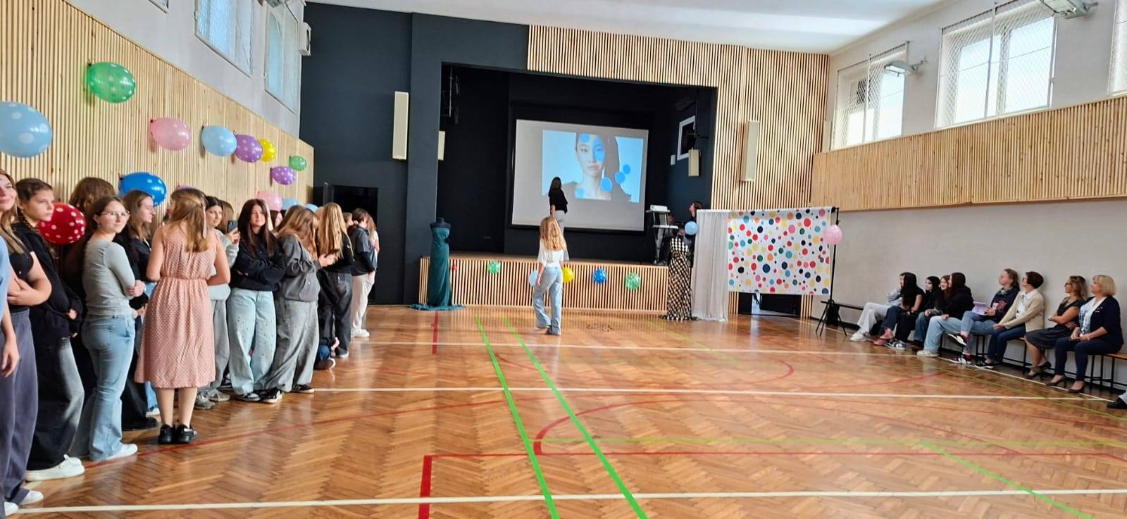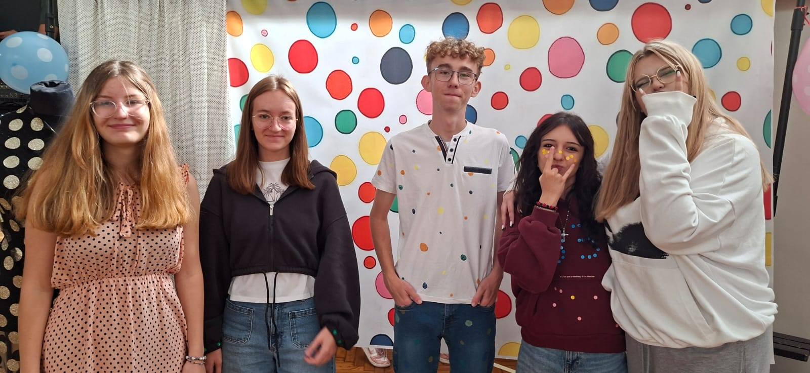 Od namalowanej kropki po wybieg! Czyli Dzień Kropki w naszej szkole. Każda kropka nabrała wyjątkowego znaczenia. Z pozoru drobny motyw stał się inspiracją do stworzenia wydarzenia, które połączyło sztukę, modę i młodzieńczą odwagę w wyrażaniu siebie! Tak właśnie obchodziliśmy Międzynarodowy Dzień Kropki - święto kreatywności, talentów i wiary we własne możliwości. "Skalna" dosłownie wypełniła się kropkami. Uczniowie, zainspirowani twórczością Yayoi Kusamy – światowej sławy artystki nazywanej „królową kropek”, sięgnęli narzędzia malarskie by odmienić zwyczajne koszulki w prawdziwe dzieła sztuki. Podobnie jak w spektakularnej współpracy Kusamy z domem mody Louis Vuitton, także i u nas kropki stały się elementem mody, prezentowanej w nowej sali gimnastycznej! Dzień Kropki w naszej szkole pokazał, że nawet najmniejsza kropka może stać się początkiem wielkich pomysłów i inspiracji. To nie tylko zabawa ze sztuką i modą, ale także piękna lekcja pewności siebie, odkrywania talentów i dzielenia się nimi z innymi. Serdecznie dziękujemy wszystkim uczniom i nauczycielom, którzy włączyli się w przygotowanie tego radosnego wydarzenia! Dzięki Wam nasza szkoła po raz kolejny udowodniła, że jest miejscem, gdzie twórczość, współpraca i odwaga mają swoje wyjątkowe święto.