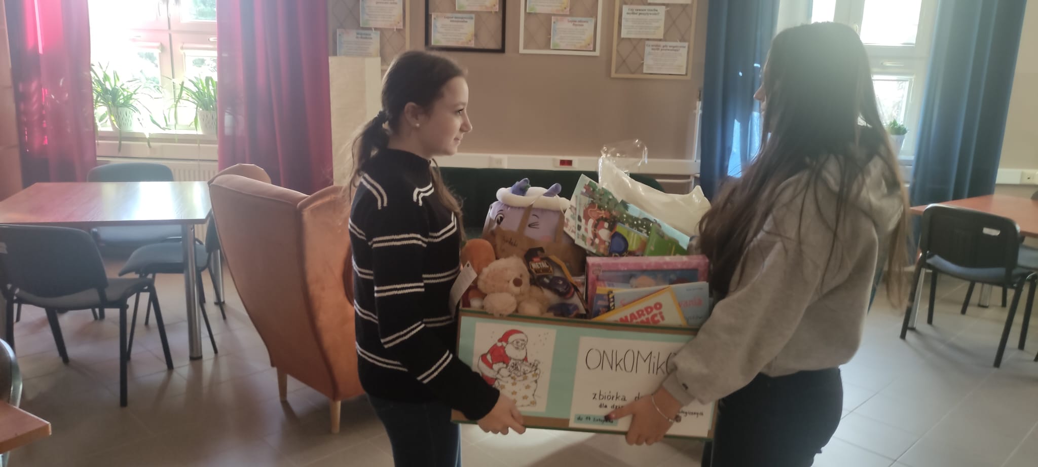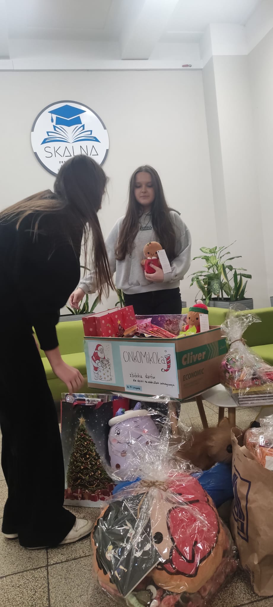 Wolontariusze ze Skalnej we współpracy z Biblioteką Publiczną Miasta Rydułtowy przeprowadzili w naszej szkole zbiórkę darów dla dzieci na oddziałach onkologicznych "Onkomikołaj". Zebraliśmy mnóstwo zabawek, książeczek, gier i słodyczy dla małych pacjentów, aby mogli chociaż na chwilę zapomnieć o problemach, z którymi się zmagają na co dzień.
