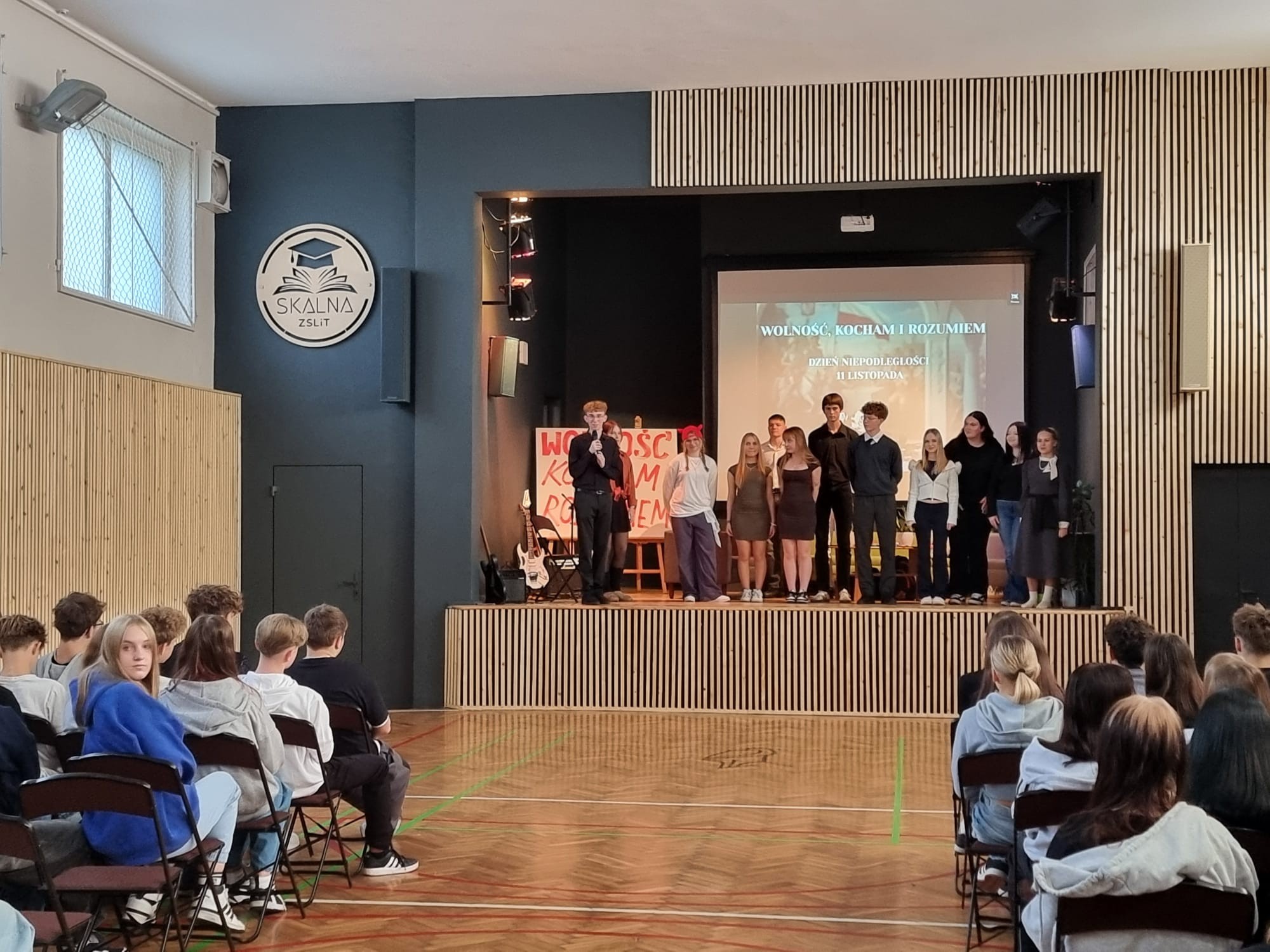 Dziś w naszej szkole odbyło się wyjątkowe przedstawienie przygotowane przez uczniów we współpracy z p. Joanną Wejchert oraz p. Klaudią Paciok. Na scenie pojawiły się taniec, śpiew, recytacje i piękna opowieść o trudnej, ale jakże ważnej drodze Polski do niepodległości. Młodzież spisała się na medal – z ogromnym zaangażowaniem i dojrzałością oddała ducha tego święta. Dziękujemy wszystkim za przygotowanie tego wydarzenia i gratulujemy uczniom występu!